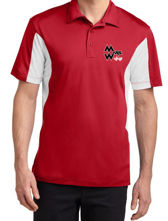 Team 4143 Event Polo — Red & White Blocked Design with Embroidered Logo